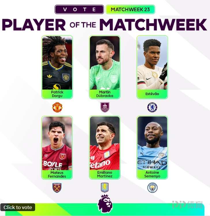本轮英超战罢,英超官方也评选出本轮最佳球员候选名单。
